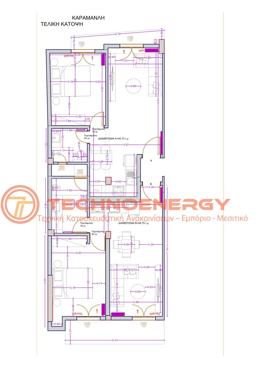 Πλήρης ανακαίνιση στην περιοχή της Ανάληψης με σκοπό την εκμετάλλευση του. Έγινε διαχωρισμός ενός μεγάλου διαμερίσματος εσωτερικά σε δύο γκαρσονιέρες με ένα δωμάτιο, σαλοκουζίνα και ενός μπάνιου. Τοποθετήθηκαν πλακάκια σε όλο το διαμέρισμα, τα μπάνια και τα μπαλκόνια. Η κατασκευή των κουζινών έγινε με μελαμινικά πορτάκια, duropal πάγκο και ίδια πλάτη. Τα εσωτερικά κουφώματα είναι laminate ενώ τα εξωτερικά κουφώματα είναι PVC με διπλή υάλωση.