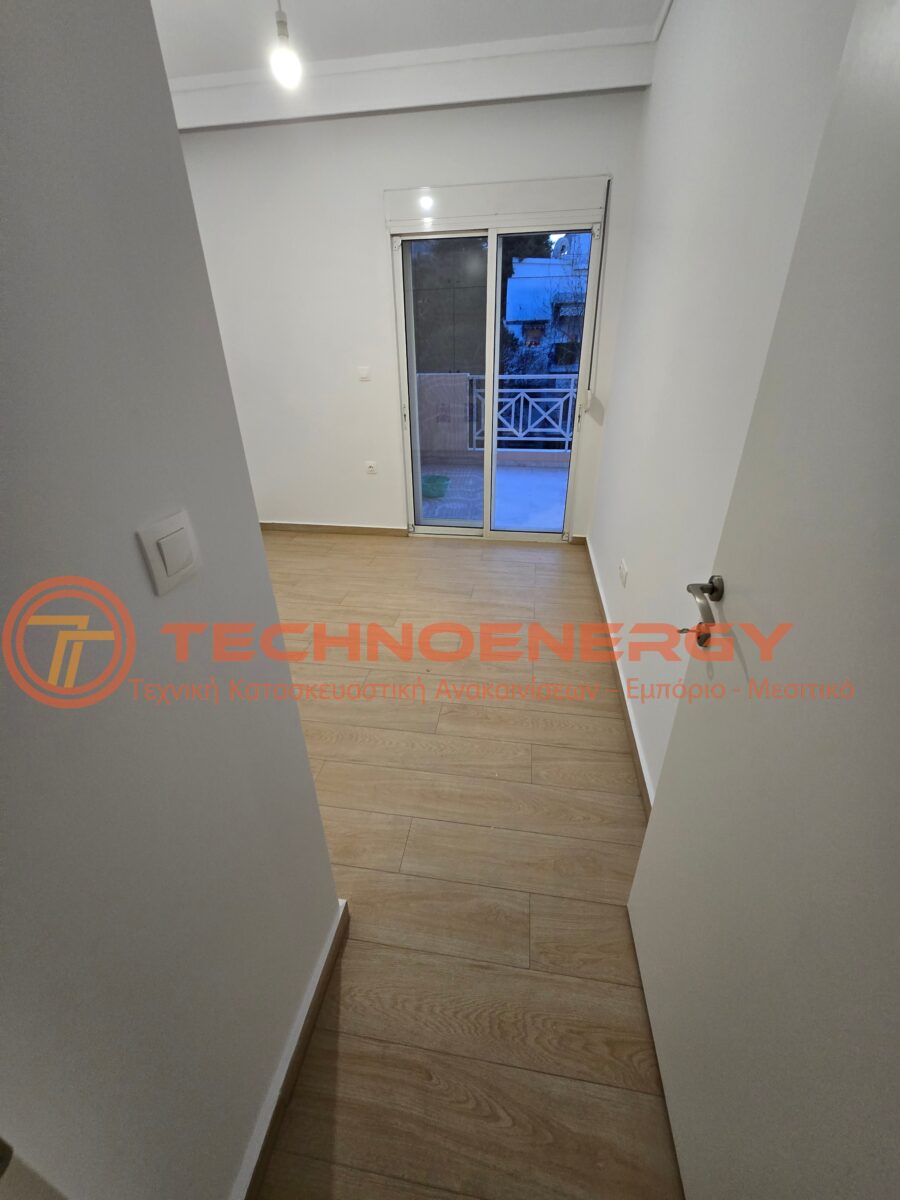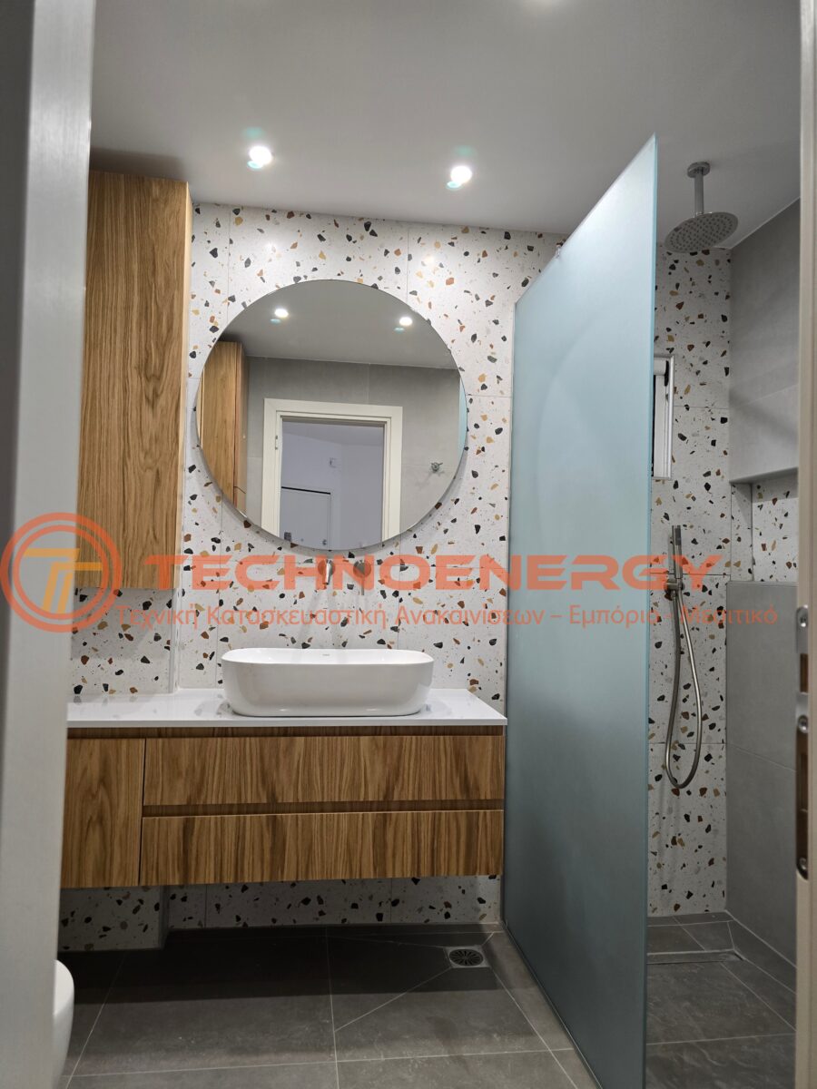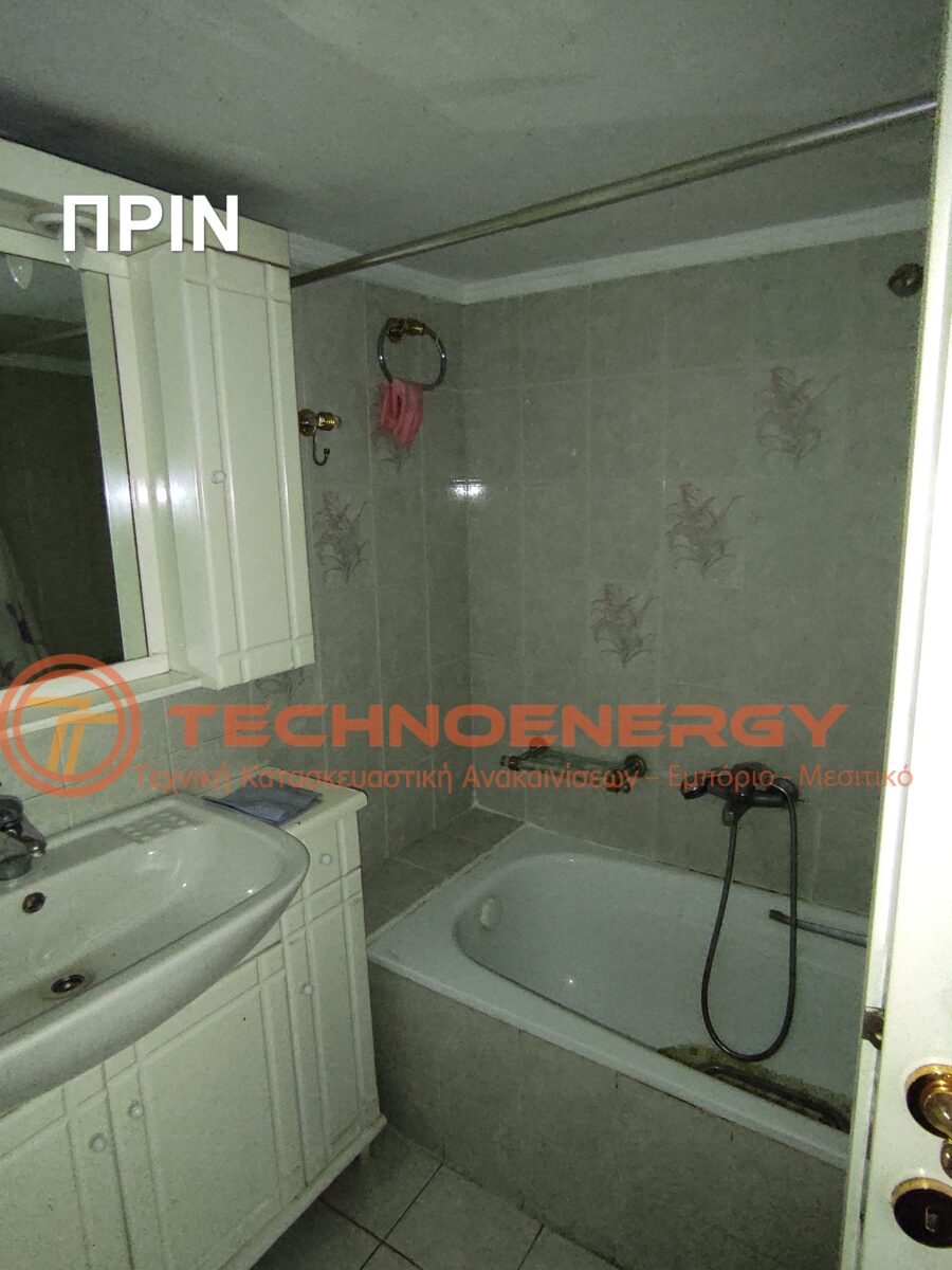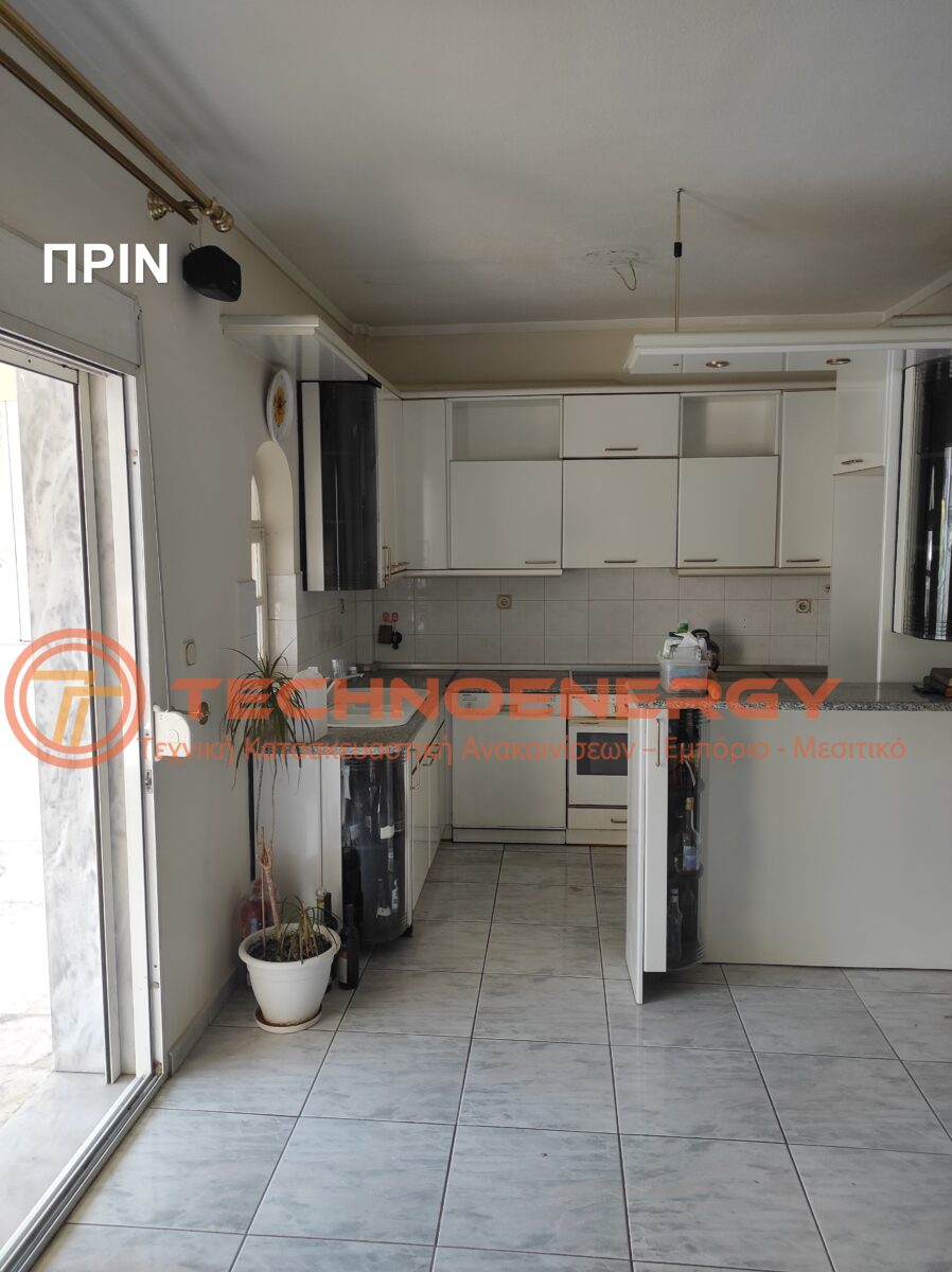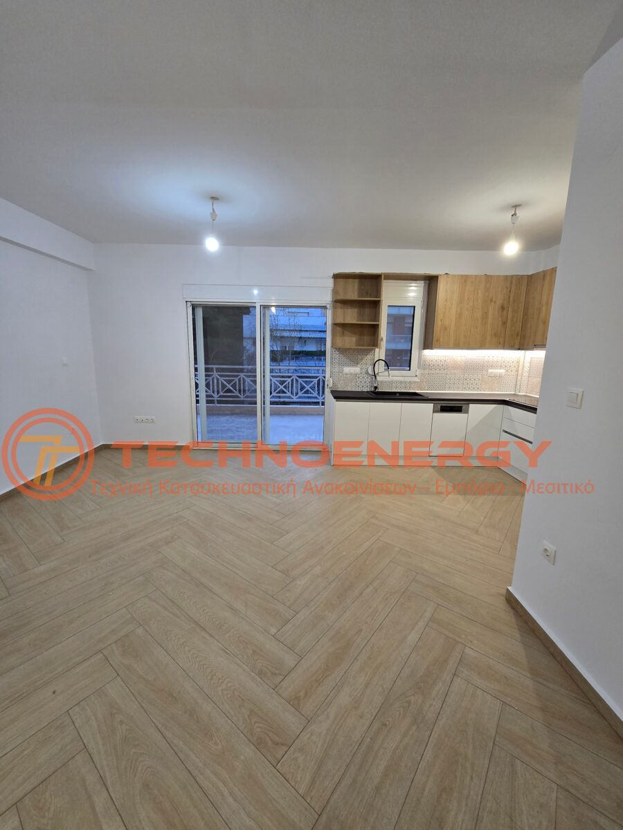 Πλήρως ανακαινισμένο διαμέρισμα στην περιοχή της Καλαμαριάς με σκοπό την ιδιοκατοίκησή του. Τοποθετήθηκε το ίδιο πλακάκι σε όλο το διαμέρισμα και το μπάνιο. Στο σαλόνι το πλακάκι τοποθετήθηκε με πλέξιμο ώστε να είναι σαν ψαροκόκκαλο. Στο μπάνιο έγινε κατασκευή επίπλων από πλακάζ θαλάσσης. Τοποθετήθηκαν εσωτερικές πόρτες laminate. Η κουζίνα κατασκευάστηκε από το συνδυασμό ακρυλικού και μελαμίνης με duropal πάγκο. Έγινε κατασκευή συρόμενης πόρτας με καθρέφτη ώστε να διαχωρίζεται η σαλοκουζίνα από τους υπόλοιπους χώρους.