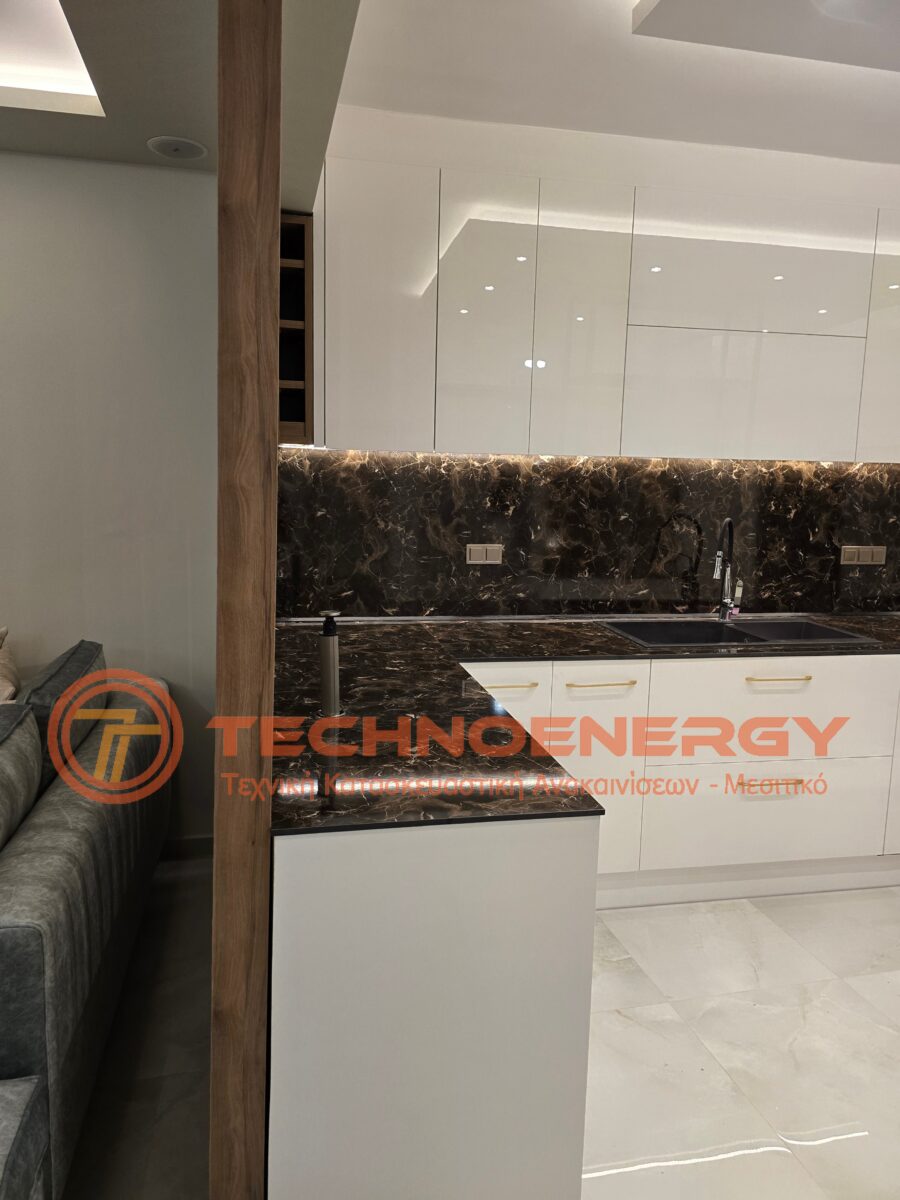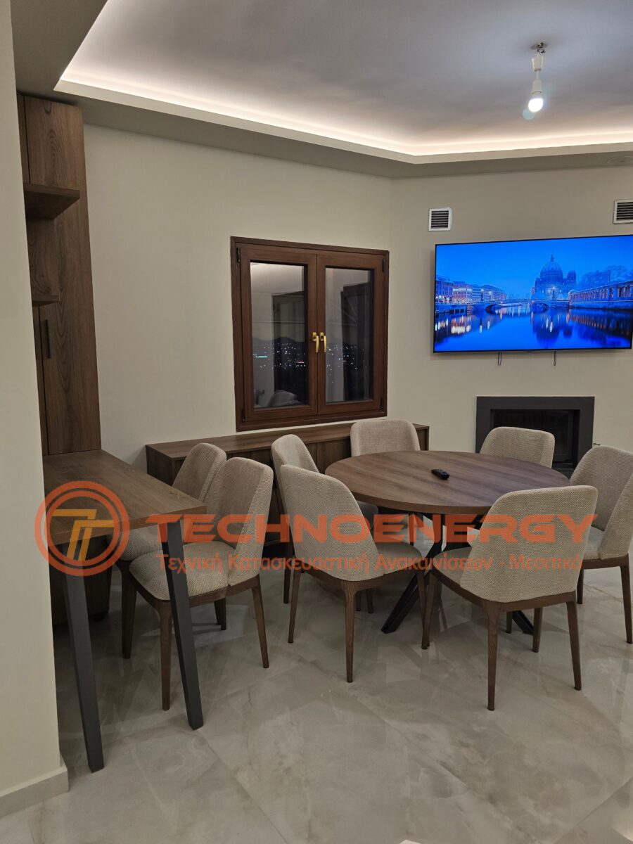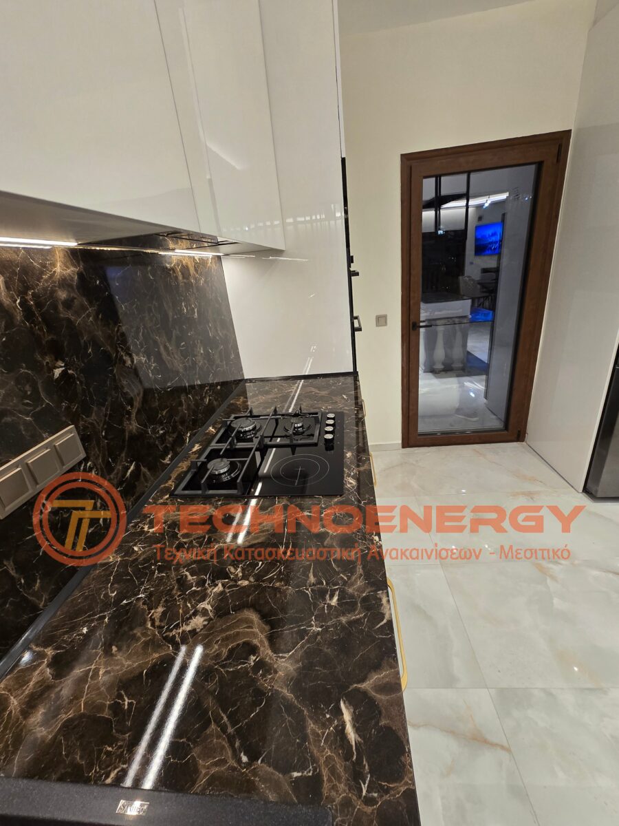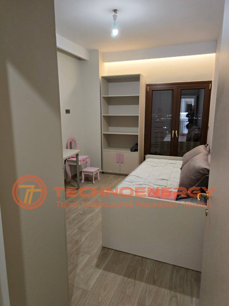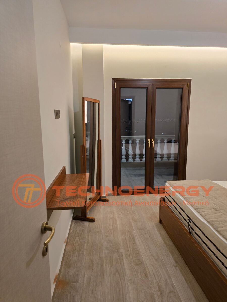Πλήρως ανακαινισμένη μεζονέτα στην περιοχή του Ωραιοκάστρου με σκοπό την κατόικησή του μετά από πυρκαγιά. Έγινε εσωτερική αλλαγή διαμόρφωσης για την δημιουργία τριών δωματίων , βεστιαρίου, αποθήκης και μπάνιου στον επάνω όροφο, ενώ ο κάτω όροφος παρέμεινε ως είχε σε διαρρύθμιση. Τοποθετήθηκε πλακάκι σε όλο το διαμέρισμα, το μπάνιο και το WC, εκτός από την σκάλα που τρίφτηκε και τοποθετήθηκε καινούρια κουπαστή. Στο μπάνιο δημιουργήθηκε χτιστός πάγκος με νιπτήρες από πλακάκι. Η κουζίνα κατασκευάστηκε από ακρυλικό με πάγκο compact. Πάνω από τη νησίδα έγινε σιδηροκατασκευή. Έγιναν κατασκευές γυψοσανίδας στο σαλόνι, την κουζίνα και τα δωμάτια. Εξωτερικά έγινε εφαρμογή θερμομόνωσης.