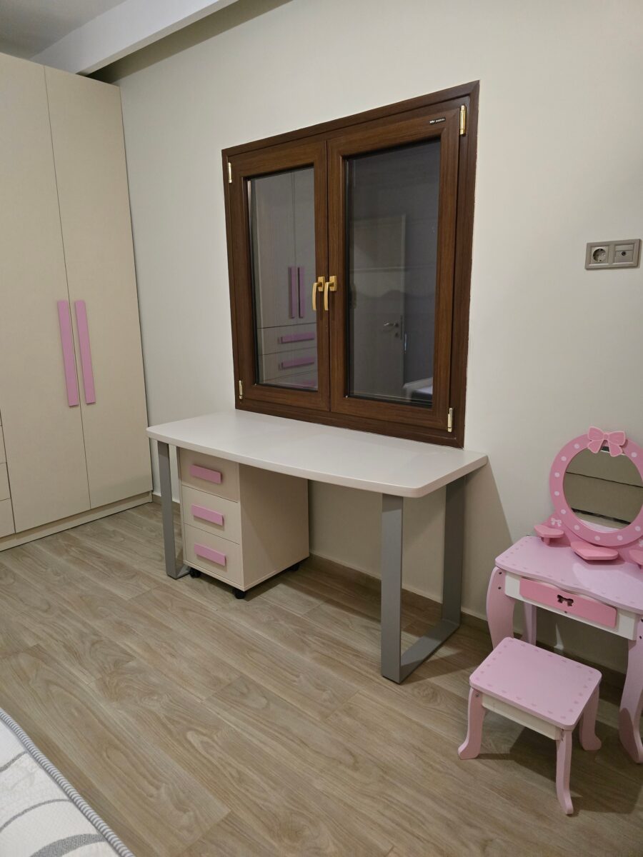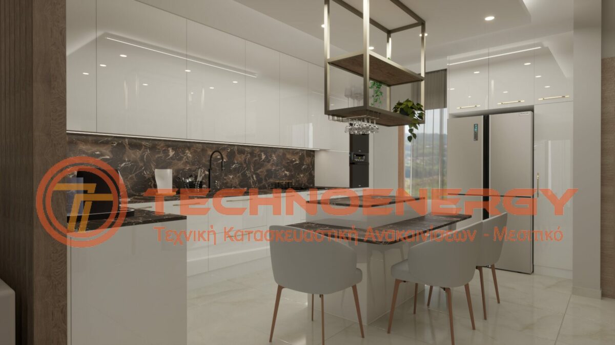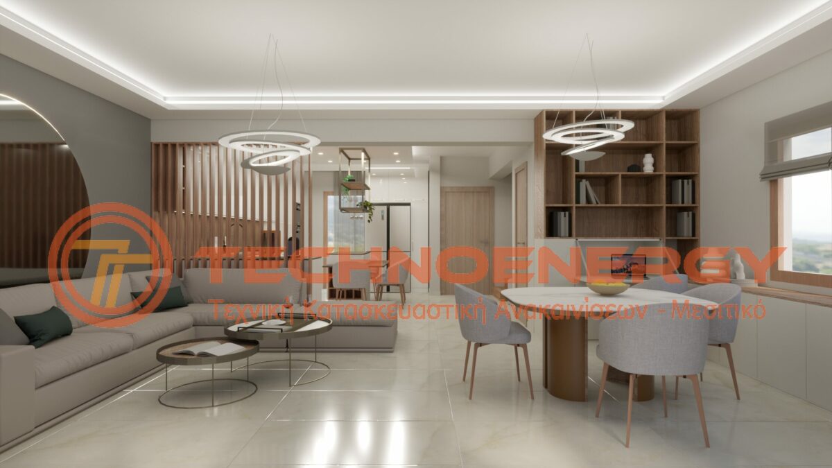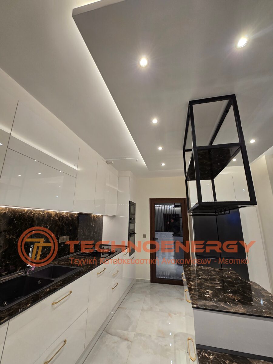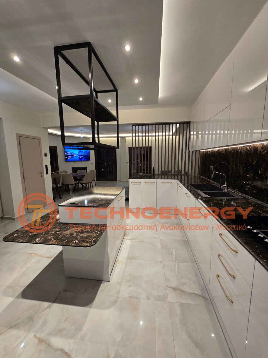 Πλήρως ανακαινισμένη μεζονέτα στην περιοχή του Ωραιοκάστρου με σκοπό την κατόικησή του μετά από πυρκαγιά. Έγινε εσωτερική αλλαγή διαμόρφωσης για την δημιουργία τριών δωματίων , βεστιαρίου, αποθήκης και μπάνιου στον επάνω όροφο, ενώ ο κάτω όροφος παρέμεινε ως είχε σε διαρρύθμιση. Τοποθετήθηκε πλακάκι σε όλο το διαμέρισμα, το μπάνιο και το WC, εκτός από την σκάλα που τρίφτηκε και τοποθετήθηκε καινούρια κουπαστή. Στο μπάνιο δημιουργήθηκε χτιστός πάγκος με νιπτήρες από πλακάκι. Η κουζίνα κατασκευάστηκε από ακρυλικό με πάγκο compact. Πάνω από τη νησίδα έγινε σιδηροκατασκευή. Έγιναν κατασκευές γυψοσανίδας στο σαλόνι, την κουζίνα και τα δωμάτια. Εξωτερικά έγινε εφαρμογή θερμομόνωσης.